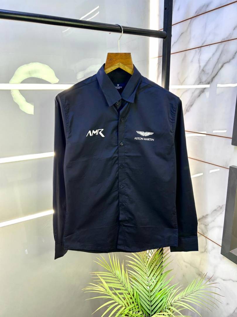 Aston Martin Hacket t Black Oxford Lycra Back Printed Premium Shirts F2919-BL