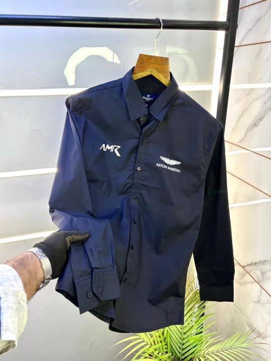 Aston Martin Hacket t Navy Oxford Lycra Back Printed Premium Shirts F2919-NY