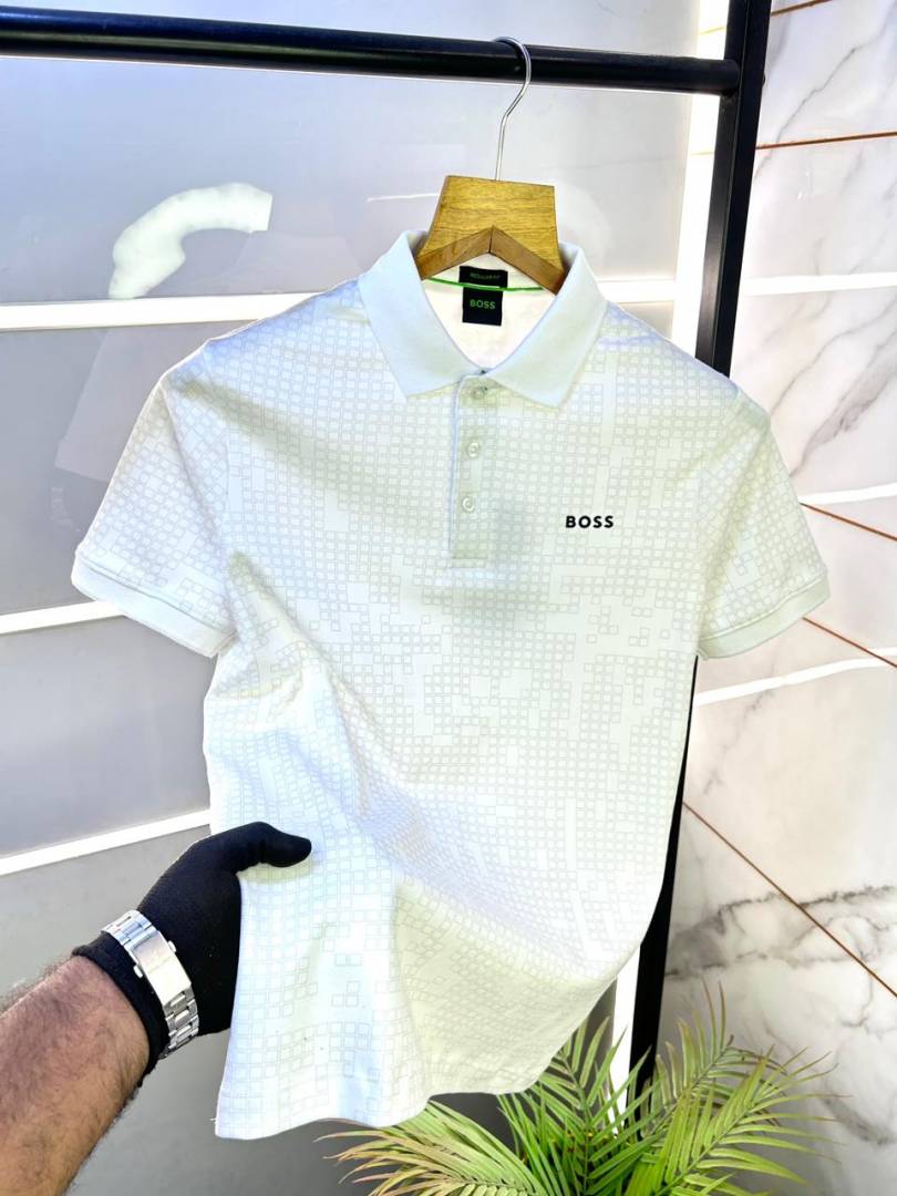 Hugo_Boss White Premium Collar Neck Polo T-shirt F3094-WH